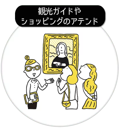 旅行業、ガイド、アシスタント、通訳の派遣。