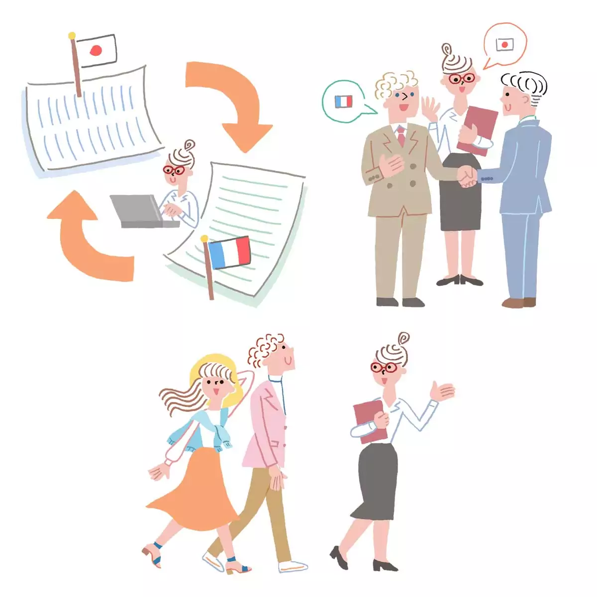 観光や美術館ガイドのほか、ショッピングのアテンドやご同行、ビジネスに役立つ通訳・翻訳の手配をはじめ、フランスで起業される際の各種手続きや物件探しなどの仲介サポート業、イベントや展示会出展の全般的なお手伝いなども承っております。